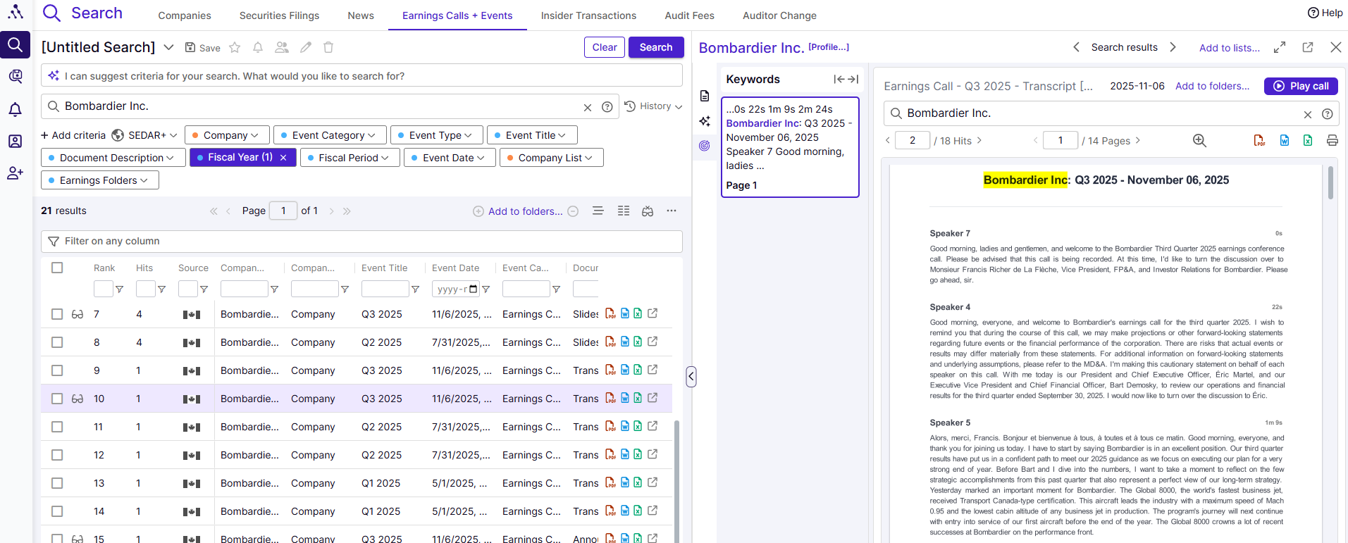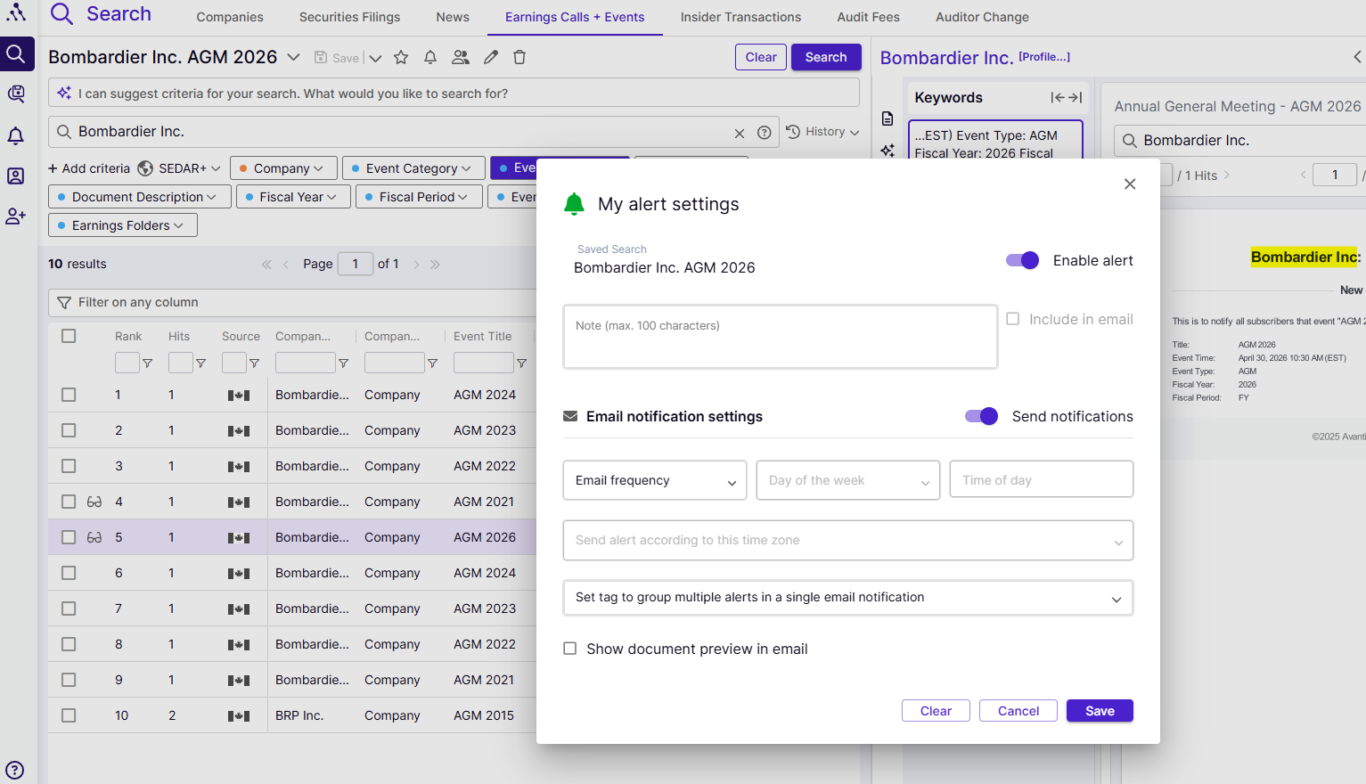 We’re excited to introduce Earnings Calls & Events, the latest addition to the Avantis platform, designed to bring critical company events and insights directly into your workflow. Whether you’re tracking earnings season, attending AGMs, or analyzing strategic announcements, this new feature gives you powerful tools to stay on top of corporate developments without breaking your research flow. Instantly pinpoint what matters most with keyword search across transcripts. Plus, use Avantis' AI-powered analysis to uncover key themes, extract insights, and accelerate decision-making directly from management commentary and Q&A.
